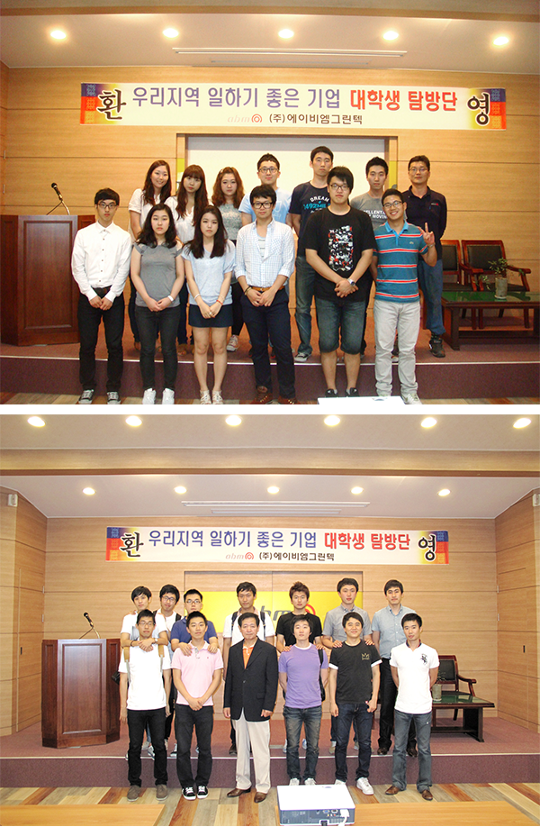 2011 일하기 좋은기업 선정 (주)에이비엠 2024-11-01 (주)에이비엠 0 712 2024.11.01 08:00 지식경제부가 주관하는 '우리지역 일하기 좋은기업'에 당사가 선정되어2011년 7월 8일과 15일에 일하기 좋은 기업 대학생 탐방단이 본사와 밀양공장을 견학하였습니다.(주)에이비엠